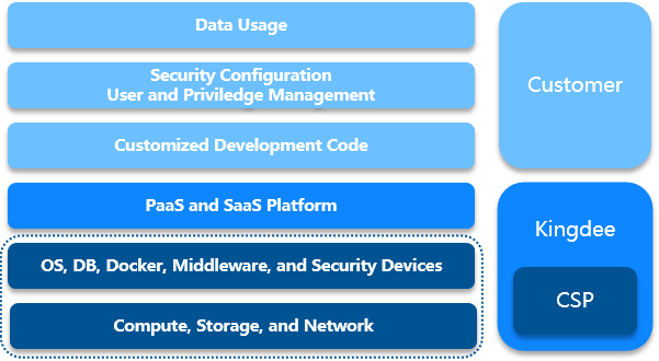Kingdee’s public cloud utilizes renowned CSPs, which offer a complete security and privacy protection system, have obtained recognized security certifications (such as ISO27001, ISO27701, and CSA-STAR), and regularly receive SOC 2 attestation reports from third-party external audits.